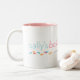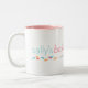 Une tasse mignonne avec le rose à l'intérieur de et le logo de la sortie