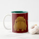 La tasse de papa de teckel avec une vue de face de grand nez d'un teckel d'un côté de la tasse et leur extrémité arrière adorable soutiennent la vue de l'autre côté de la tasse. Des couleurs et le texte d'arrière - plan peuvent être changés. Cliquez sur juste dessus la personnaliser il bouton.
