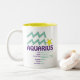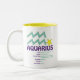 Cette tasse de traits de Verseau fait un cadeau d'anniversaire parfait pour n'importe quel Verseau. Le Verseau est l'onzième signe du zodiaque et inclut toutes les personnes nées depuis le 20 janvier - 18 février. Le symbole de Verseau est le porteur de l'eau. Les traits de personnalité de Verseau sont amicaux, honnêtes, inventifs, indépendants et imprévisibles. La pierre porte-bonheur de Verseau est améthyste et la planète d'acte de Verseau est Uranus