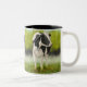 La conception originale de beaux-arts d'une vache à lait du Holstein dans son pâturage par l'illustrateur Carolyn McFann sur des deux frais modifient la tonalité la tasse de café pour des fans d'animal de ferme.