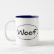 Tasse avec Woof à l'intérieur d'un euro cercle. Grand cadeau pour tout amoureux des chiens.