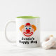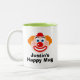 Tasse d'enfant sur mesure gaie avec un visage de clown heureux. Dessin mignon avec grand nez rouge et casquette drôle. Personnalisez avec le nom de l'enfant. Amusant pour les garçons et les filles. Choisissez une couleur personnalisée à l'intérieur.