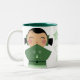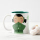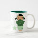Poupée de Kokeshi utilisant un kimono vert avec des petits groupes d'étoile sur l'avant et le dos. Le milieu a une conception d'étoile.
