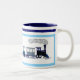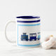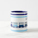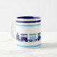 Le train des enfants mignons dans le noir et les bleus s'étend à travers cette tasse blanche. Personnaliser en ajoutant tout texte que vous voulez. Fait une tasse intéressante de cadeau pour remplir de sucrerie ou de petites sucreries.