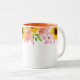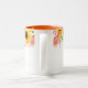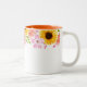 Cette tasse florale présente de jolies fleurs estivales de roses sauvages roses, de pavots coralliens et de tournesols joyeux autour du bord supérieur de la tasse. L'exemple d'intérieur présenté est orange.