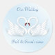 2 cygnes blancs stylisés autocollant rond