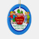 Super Cute bon marché 2 Ornements d'enseignant assisté Personnalisé avec 2 modèles de zone de texte à taper dans l'ANNÉE ou les ANNÉES, le NOM de l'enseignant et/ou VOTRE TEXTE ou simplement supprimer le texte temporaire. Idéal pour les cadeaux d'enseignant du primaire. Des garçons et des filles montrant des cadeaux "A+ Teacher". Grosse pomme à l'arrière de ces ornements d'enseignants.
