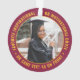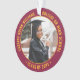 Commémorez la réussite du diplômé avec cet élégant marron et la coutume jaune or deux graduations photo autour de l'ornement acrylique de Noël. Les images et tout le texte sont simples à customiser et peuvent être différents à l'avant et à l'arrière. Inclure toute citation inspirante préférée, dicton motivationnel, nom et diplôme de l'école, félicitations, merci maman et papa, ou tout autre message de votre choix. Design comporte une bordure rouge bordeaux, un nom typographique moderne personnalisé, l'école et l'année de classe dans un cercle, et 2 photos du diplômé, comme des images ou des images seniors de la cérémonie de début. Fait une idée de cadeau de remise de diplôme de gardien réfléchi.