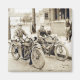Magnet avec l'image de deux hommes à moto. C'est une photo d'antiquité dans ma collection. Il a été réparé pour votre plaisir.