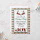 Une invitation à la fête de Noël avec une illustration du saut du cerf de Noël 2. Les cerfs sont faits de sériole rouge et noire, avec un peu de coeur entre eux. Le mot "Joy" sur le fond est également fait avec une texture rouge plaid. L'arrière - plan est un motif Jacquard rouge et vert.