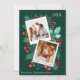 Cette carte de Noël de famille de 2 photos comporte deux modèles instantanés de type photo pour vous d'insérer vos photos, avec un arrière - plan de feuillage aquarelle peint à la main comme le houx, les baies, les feuilles verts et les fleurs rouges. Sur le dos est un motif avec les mêmes éléments peints en rouge et vert. Vous pouvez customiser tous les détails de cette carte. Voir l'ensemble de la collection correspondante.