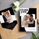 Abstraite arche formes rétro mariage unique deux photos personnalisées carte de remerciements avec votre message (modèle texte pré-imprimé) et typographie en noir et blanc minimaliste. +++++++ Convient aux mariages contemporains décontractés et design. Téléchargement numérique disponible