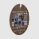 Célébrez la joie de votre nouvel endroit avec une photo personnalisée 2 "Premier Noël dans notre nouvelle maison" faux bois rond ornement acrylique. Les textes et les images de ce modèle sont simples à personnaliser. (CONSEIL EN MATIÈRE DE PLACEMENT D'IMAGE : Une façon simple de centrer une photo exactement comment vous voulez est de la rogner avant de la télécharger sur le site Zazzle.) Le design moderne de la ferme comprend une bordure en faux bois brun rustique, d'élégantes calligraphies manuscrites, typographie de typographie nom de famille et année, et deux images de votre choix. Cette tenue de famille unique ajoute une touche élégante aux décorations de maison de Noël ou fait une idée de cadeau de réacteur ménager réfléchie. Il n'y a pas d'endroit comme une nouvelle maison pour les vacances !
