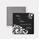 carré 2"x2" Personnalisé noir et blanc Flore Filigree faveur magnets sont imprimés en haute qualité et avec des couleurs vives. Parfait pour les annonces pour bébés, les rappels de sauvegarde, les cadeaux pour la famille et les amis, ou même de grandes publicités promotionnelles pour toute entreprise. Les coller sur votre réfrigérateur, votre meuble à fichier, votre lave-vaisselle ou votre propre surface métallique préférée.