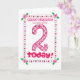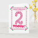 Une jolie carte d'anniversaire pour une fillette de deux ans, avec un joli design floral dans les tons rose et vert, fait d'un collage de papier peint à la main par Judy Adamson.