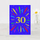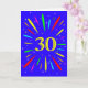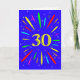 Une carte explosive à 30 ans ! Quelle merveilleuse façon d'envoyer des salutations d'anniversaire. Le chiffre 30 en jaune vif avec une explosion de couleurs vives et d'étoiles.