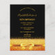 Une invitation moderne, élégante et glamour pour une fête du 30e anniversaire de femme. Un arrière - plan noir chic avec un élégant faux arc doré, ruban et étincelant. Le nom est écrit avec un script de style à la main doré moderne. Modèles pour les détails de votre fête. Conseil : Si vous ne voulez pas qu'il ressemble à une carte postale, cliquez sur customiser, allez à l'arrière et retirez le séparateur et le timbre postal.