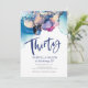Invitation moderne du 30e anniversaire avec des aquarelles abstraites bleu marine, aqua et rose et une page d'accueil correspondante.