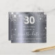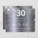 Une élégante carte Save the Date pour une fête de 30e anniversaire. Un arrière - plan d'aspect faux argent moderne, décoré avec de la poussière de parties scintillant imitation. Personnalisez et ajoutez une date et un nom/âge. Le texte : Save the Date est écrit avec un grand script de style à la main tendance. Numéro 30 avec une police de style ballon.
