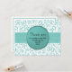Cette carte de notes est une façon élégante de vous aider à dire "Merci". Il y a des modèles de texte pour que vous puissiez facilement personnaliser les mots sur le front central. Cette conception est un motif aléatoire turquoise et blanc avec le numéro de jalon 30 répété dans des tailles et angles variés. Il y a une bande turquoise et un cercle au centre de votre texte. Pas seulement pour les anniversaires jalons ; ce design numérique est adapté à toutes les occasions ou célébrations avec le numéro jalon trente. Le dos est recouvert pour votre message manuscrit.