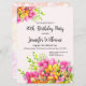 Joyeuses fleurs roses et oranges, 30ème anniversaire carte d'invitation avec une aquarelle colorée d'un bouquet de fleurs.