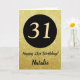 31e Joyeux Anniversaire Carte de Parties scintillant Noir et Or avec nom personnalisé. Pour plus de personnalisation, cliquez sur le bouton "Customiser" et utilisez notre outil de conception pour modifier ce modèle.