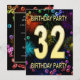 Ajoutez un nom pour customiser cette invitation unique. 32e anniversaire invitation de fête avec feux d'artifice et bulles. Ajoutez vos détails à l'intérieur pour créer un invitation amusant parfait. Allumez le ciel avec ces feux d'artifice glorieux. Une invitation à une fête d'anniversaire qui a du style et beaucoup de plaisir.