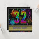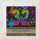 Une amusante invitation de fête de 32ème anniversaire avec des couleurs joyeuses, des bulles et des feux d'artifice. Une belle carte pour tout âge. Voir toute la gamme d'invitations et de cartes dans mon magasin.
