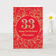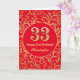 33e Anniversaire Carte d'Anniversaire Rouge et Or Floral. Pour plus de personnalisation, cliquez sur le bouton "Customiser" et utilisez notre outil de conception pour modifier ce modèle.