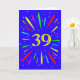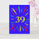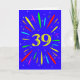 Une carte explosive de 39ème anniversaire ! Quelle merveilleuse façon d'envoyer des salutations d'anniversaire. Le chiffre 39 en jaune vif avec une explosion de couleurs vives et d'étoiles.