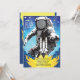 Un design merveilleux avec un astronaute adapté dans l'espace avec une superposition d'un véhicule spatial qui explose.La carte est facile à customiser avec votre libellé, police, couleur de police et choix de six types de papier.
