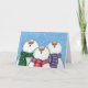 3 hommes de neige farfelus regardant la chute de neige en émerveillement. Carte de voeux de Noël amusante. Créé à partir d'un tableau original 2008 Lisa Marie Robinson