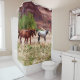 Cette photographie originale d'art de trois chevaux dans un canyon avec de hautes falaises rouges dans l'arrière - plan est très excitante. Un rideau de douche magnifique et unique pour votre cabine de résidence ou de vacances. Photo originale de Marcia Socolik, dans le Canyon de Chelly, en Arizona. Tous droits réservés © 2015 Alan & Marcia Socolik
