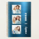 Customisez facilement ce planificateur moderne en remplaçant les trois exemples d'images par vos photos carrés préférées. Ajoutez vos initiales de nom ou de monogramme et l'année en typographie blanc cassé sur un turquoise arrière - plan en métal brossé.