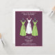 Envoyez vos invitations pour les douches nuptiales avec ce joli design de douche nuptiale qui comporte de mignons robes de femme de chambre en vert et une en blanc, symbolisant la mariée à être. Le texte est prêt à être personnalisé.