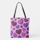 This tote bag features a soft 3D heart pattern in shades of red, pink, and purple on a light pink background. The romantic yet modern design makes it easy to style for everyday use while adding a cozy, love-inspired touch.