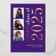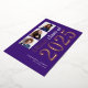 3 Photos Grad 2025 Violet avec Faire-part à huile. Design moderne élégance avec véritable feuille en or rose soulignant l'année et la typographie Grad à côté du reste du texte en blanc des deux côtés avec un arrière - plan violet. Vous pouvez également choisir de l'or ou de l'argent feuille. Ajoutez vos trois photos préférées. Facilement personnalisable avec l'année, le nom et le lycée et le message sur le dos, et remplacer les exemples de photos par les vôtres.