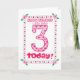 Une jolie carte d'anniversaire pour une petite soeur de trois ans, avec un design floral dans les tons rose et vert, fait d'un collage de papier peint à la main par Judy Adamson.