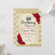 Invitation du 40e anniversaire. Design élégant en or et rouge. Comprend des bandes d'or de parties scintillant fausse, des roses rouges police de caractères stylisés et des confettis. Parfait pour une fête d'anniversaire glam.