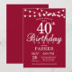 40e anniversaire Invitation avec lumières à cordes. Arrière - plan rouge de Bourgogne. 13ème 15ème 16ème 18ème 20ème 21ème 30ème 40ème 50ème 60ème 70ème 80ème 90ème 100ème, Tout âge. Pour plus de personnalisation, cliquez sur le bouton "Customiser" et utilisez notre outil de conception pour modifier ce modèle.