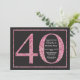 Invitation du 40e anniversaire. Parties scintillant noire et rose Invitation de fête d'anniversaire avec Arrière - plan Chalkboard. Anniversaire surprenant. Anniversaire adulte. Fête Anniversaire Bash pour hommes ou femmes. Pour plus de personnalisation, cliquez sur le bouton "Customiser" et utilisez notre outil de conception pour modifier ce modèle.