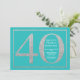 40e Invitation d'anniversaire. Invitation de fête d'anniversaire de la Parties scintillant Turquoise et d'argent avec Arrière - plan Turquoise. Anniversaire surprise. Anniversaire adulte. Fête Anniversaire Bash.