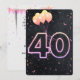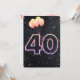 Panneau de néon brillant et confetti sur arrière - plan noir avec bouquet de ballon pour invitation de fête de 40e anniversaire.
