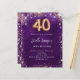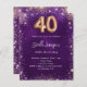 Célébrez un 40ème anniversaire spécial avec cette magnifique invitation, parfait pour une soirée élégante. L'arrière - plan violet profond présente une belle texture inégale, accentuée par l'or rose et la fausse parties scintillant dorée pour une touche de pétillant. Le nom est écrit dans un script délicat et écrit à la main, ajoutant une touche personnalisée et sophistiquée. Customisez l'invitation en ajoutant le nom et tous les détails importants du parti. Ce design luxueux donne le ton d'une fête inoubliable. 1 feuille = 1 invite imprimé bord à bord.