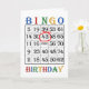 43e carte d'anniversaire. Dites "Joyeux anniversaire" à un joueur de bingo avec une carte de bingo. L'âge est entouré de rouge. Un joueur fou de bingo va avoir un énorme coup de pied sur cette carte ! Copyright Norma Cornes.
