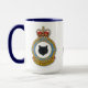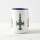 Un mug en céramique de 15 oz de haute qualité avec les crêtes du 441e Escadron et du 1er Groupe aérien du Canada, et une vue panoramique de l'emblématique CF-104. L'intérieur et la poignée de la tasse sont bleu cobalt.