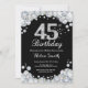 Invitation du 45e anniversaire. Arrière - plan de tableau de bord diamant en pierre d'argent. Élégant invitation de Bassorh Anniversaire. Noir et blanc. Anniversaire adulte. Femmes Anniversaire. Hommes Anniversaire. Pour plus de personnalisation, cliquez sur le bouton "Customiser" et utilisez notre outil de conception pour modifier ce modèle.