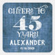 stickers 45e anniversaire de marque de faveur, avec le charme burlap de lin bleu rustique avec des lettres de tableau noir en blanc et personnalisée avec le nom et la date ci-dessous.