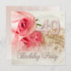 Une belle image délicate d'un rose dans les tons roses doux. Dans l'arrière - plan est une série de perles. L'ensemble est adouci par une plume délicate. Une délicieuse invitation à la fête du 49e anniversaire. Remplacer par les détails de votre propre fête