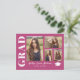 Annoncez fièrement votre diplôme d'études secondaires ou collégiales avec ces 4 cartes postales personnalisées de collage photo en rose et blanc. Il vous suffit de déposer vos photos personnelles et si nécessaire, utilisez l'outil de conception pour les rogner pour un ajustement parfait. Vous pouvez même customiser la couleur arrière - plan à l'un de vos choix. Ces cartes élégantes peuvent facilement devenir vos invitations personnelles de grand public en changeant simplement le texte au besoin. Pour voir d'autres articles comme celui-ci, visitez mon magasin ici à "www.Zazzle.com/LakeViewCardCo". Merci